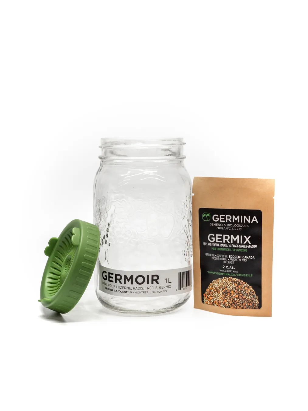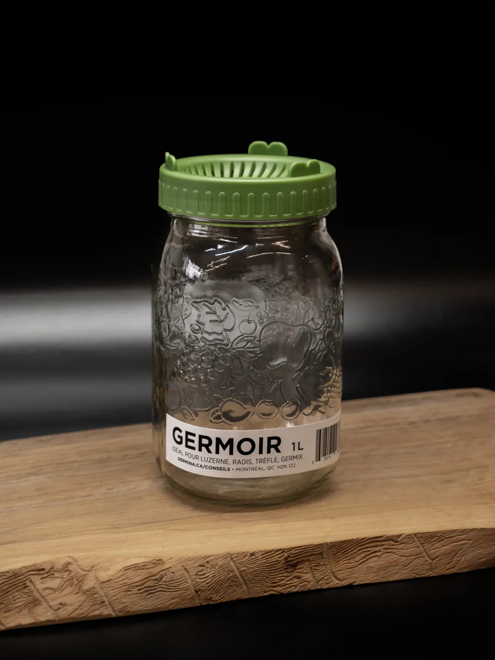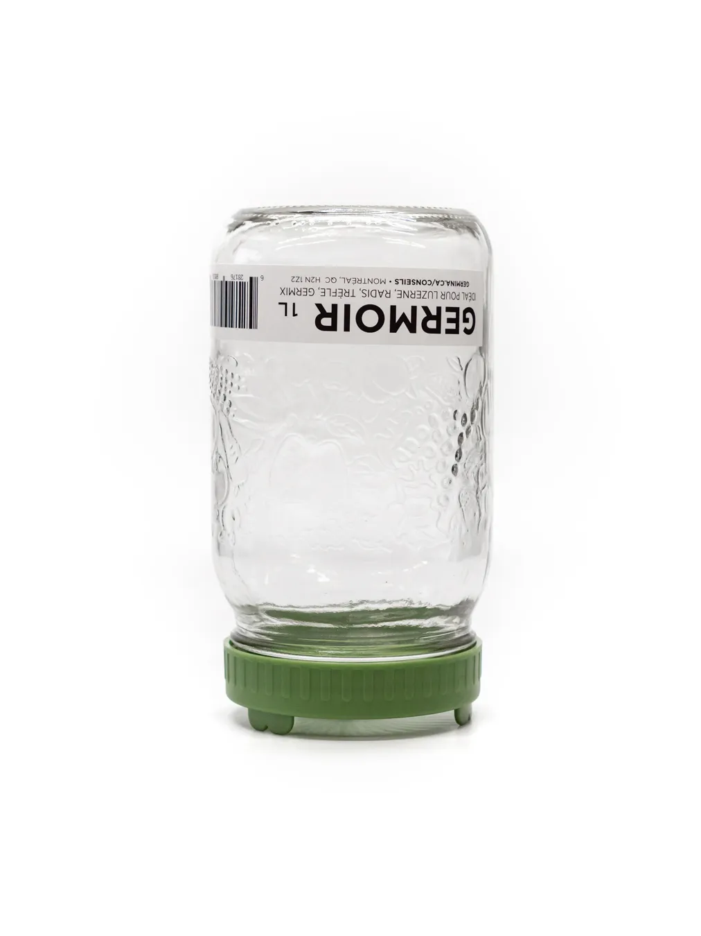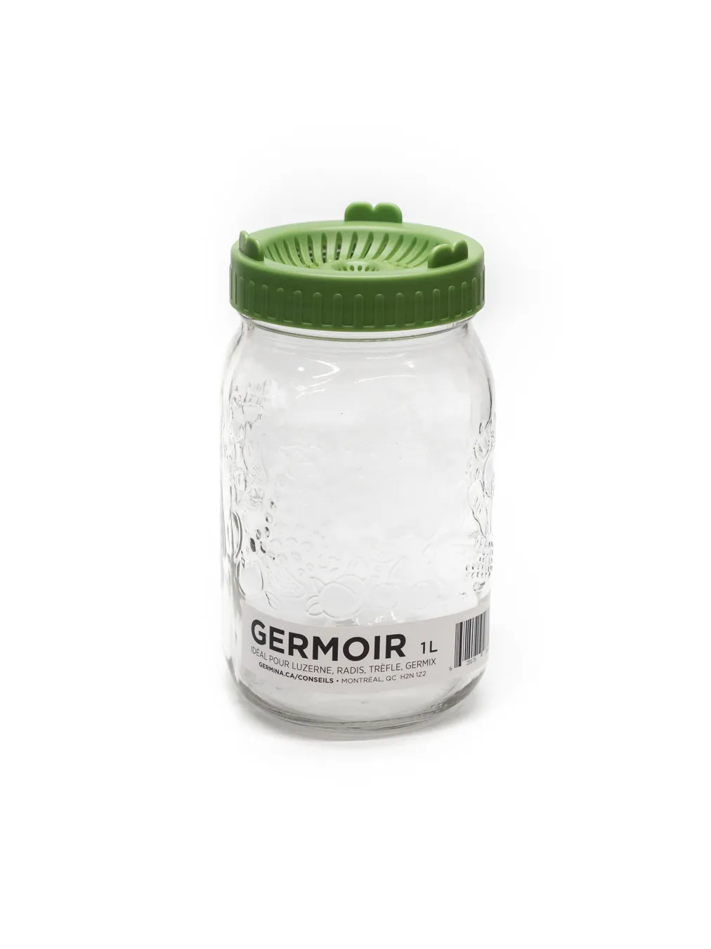 Aussi appelé le Germinateur, c’est un incontournable pour cultiver des germinations à la maison. Il est constitué d’un pot en verre de 1 litre avec un couvercle perforé qui permet l’écoulement de l’eau lorsque celui-ci est en égouttement.